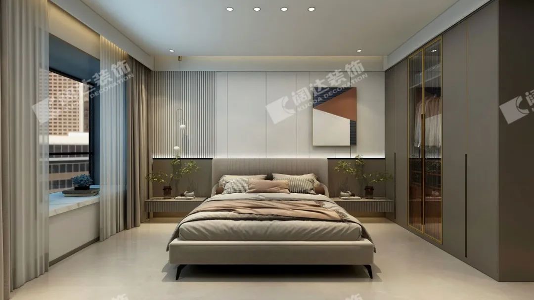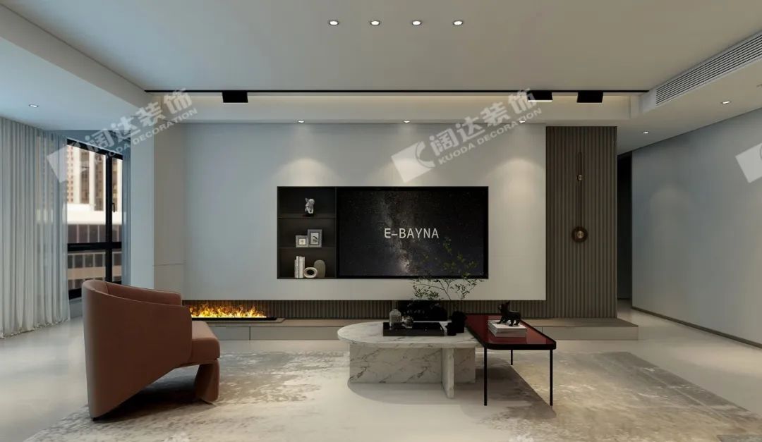 本案用簡潔的木制格柵材質(zhì)做主背景,流露出生活的溫度,傳遞著居住者對美好生活的向往。簡約格局呈現(xiàn)出現(xiàn)代居家生活的精致、舒適與自由。