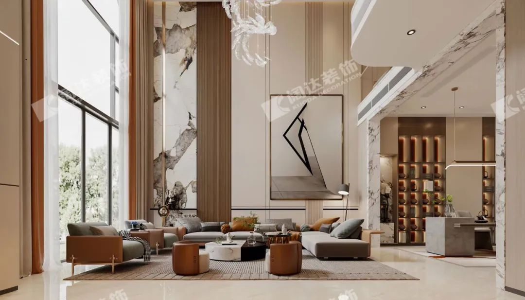 客廳溫暖明亮,經(jīng)濟耐看是本案的主要需求之一,剔除了法式復(fù)雜的線形后,融入了現(xiàn)代溫暖明亮的暖色系風格,材質(zhì)上搭配巖板,給予了視覺上的沖擊力,成為業(yè)主期待的理想之家。